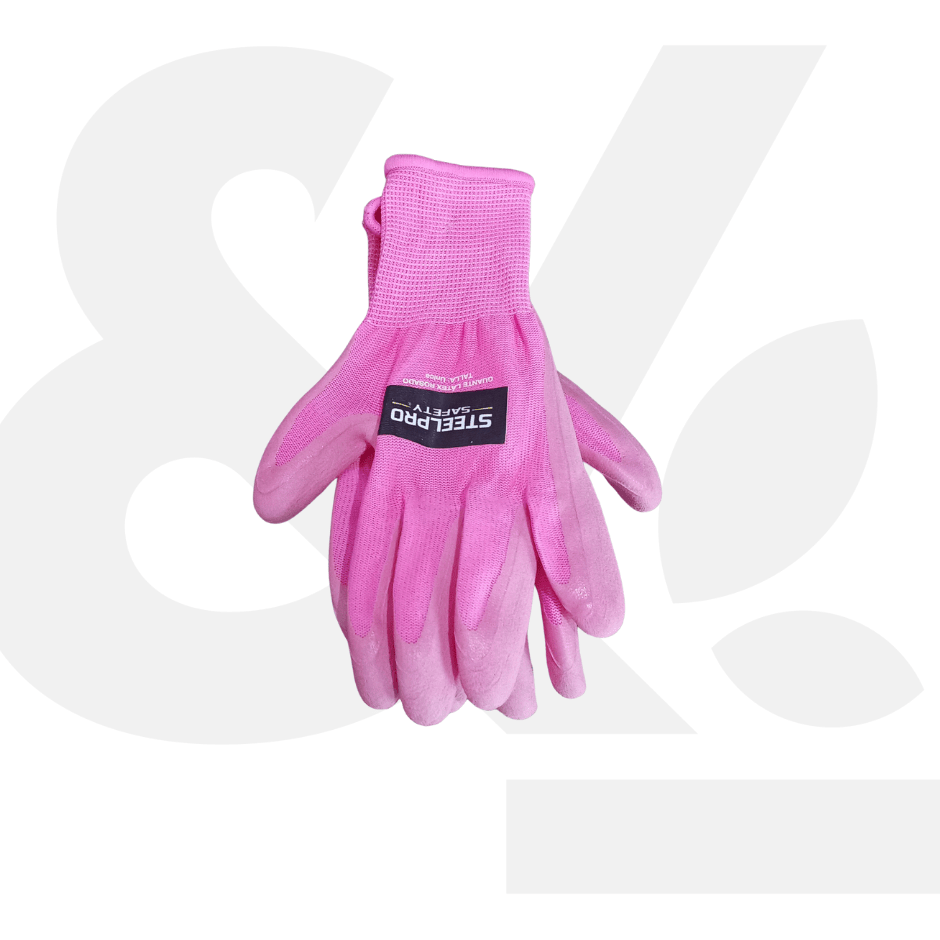 Guantes de Poli algodón con Recubrimiento en Látex Corrugado Rosado